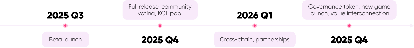 - 2025 Q4: Full release, community voting, KOL pools.